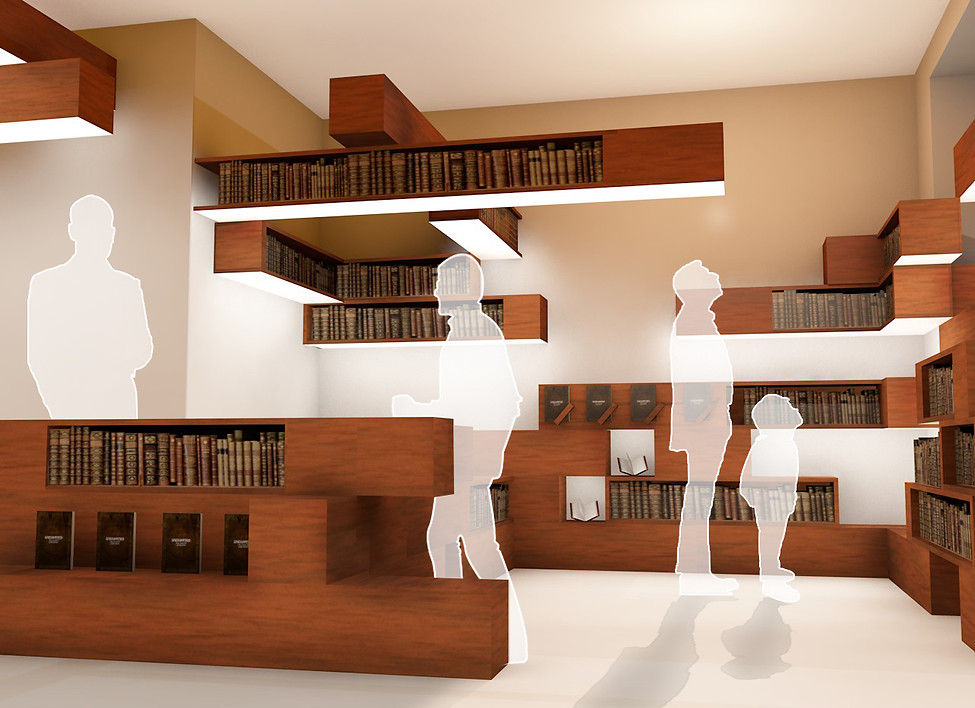 The publishing house asked us to optimise the space and create different zones including a general bookshop, conference room, kids bookshop, storage, cash desks and toilets for the staff.